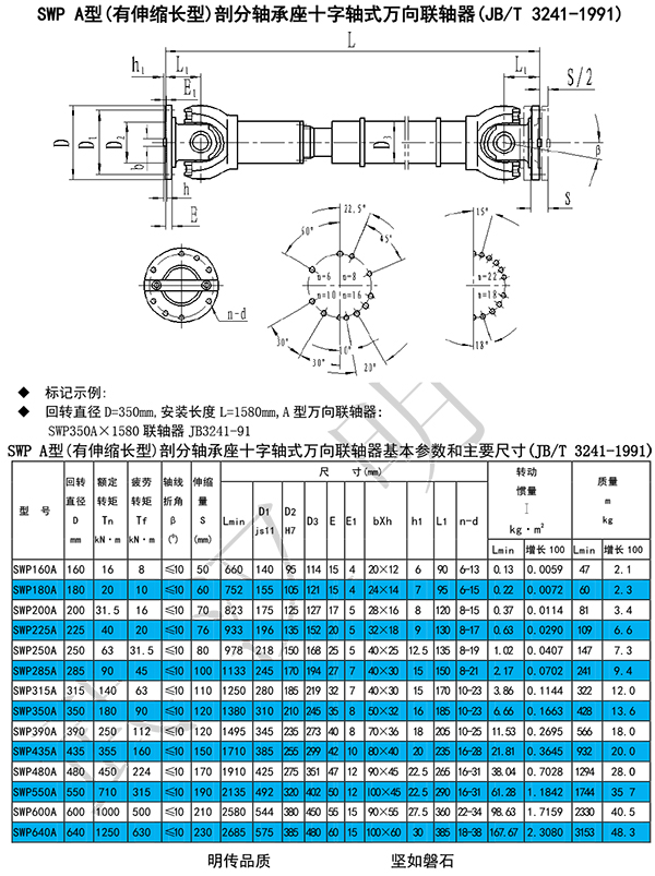 SWC型(整體叉頭)、SWP(剖分軸承座)萬向聯軸器的主要特點: