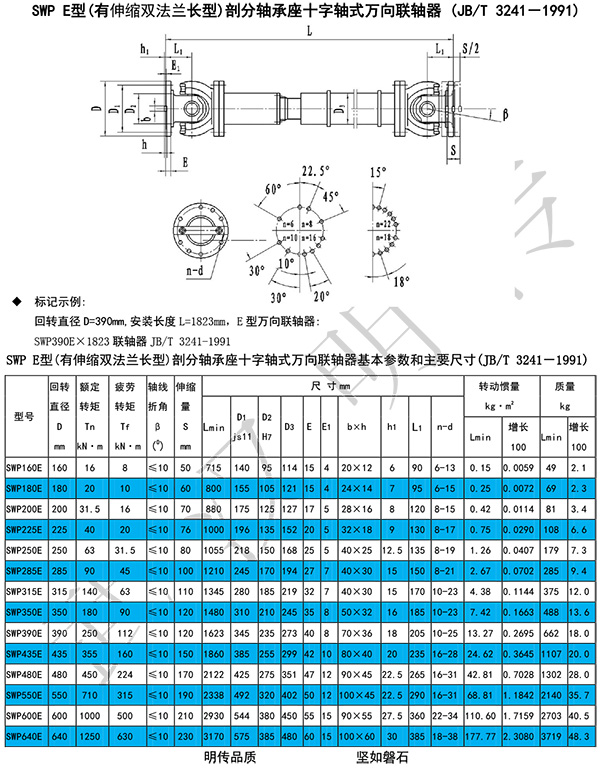1.具有較大的角度補償能力,SWC型軸線折角可達15°~25°,SWP型可達10°。