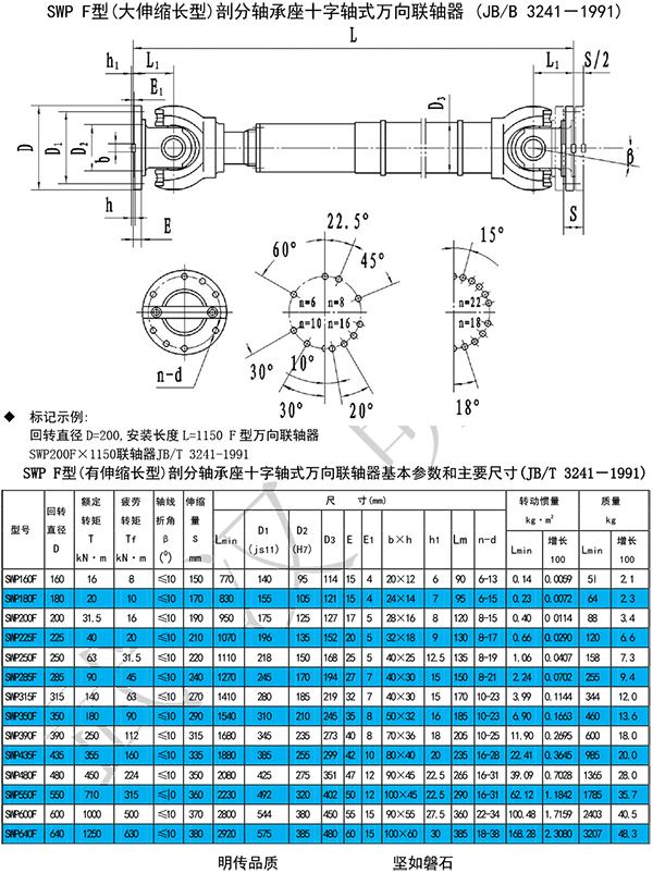 1.具有較大的角度補償能力,SWC型軸線折角可達15°~25°,SWP型可達10°。
